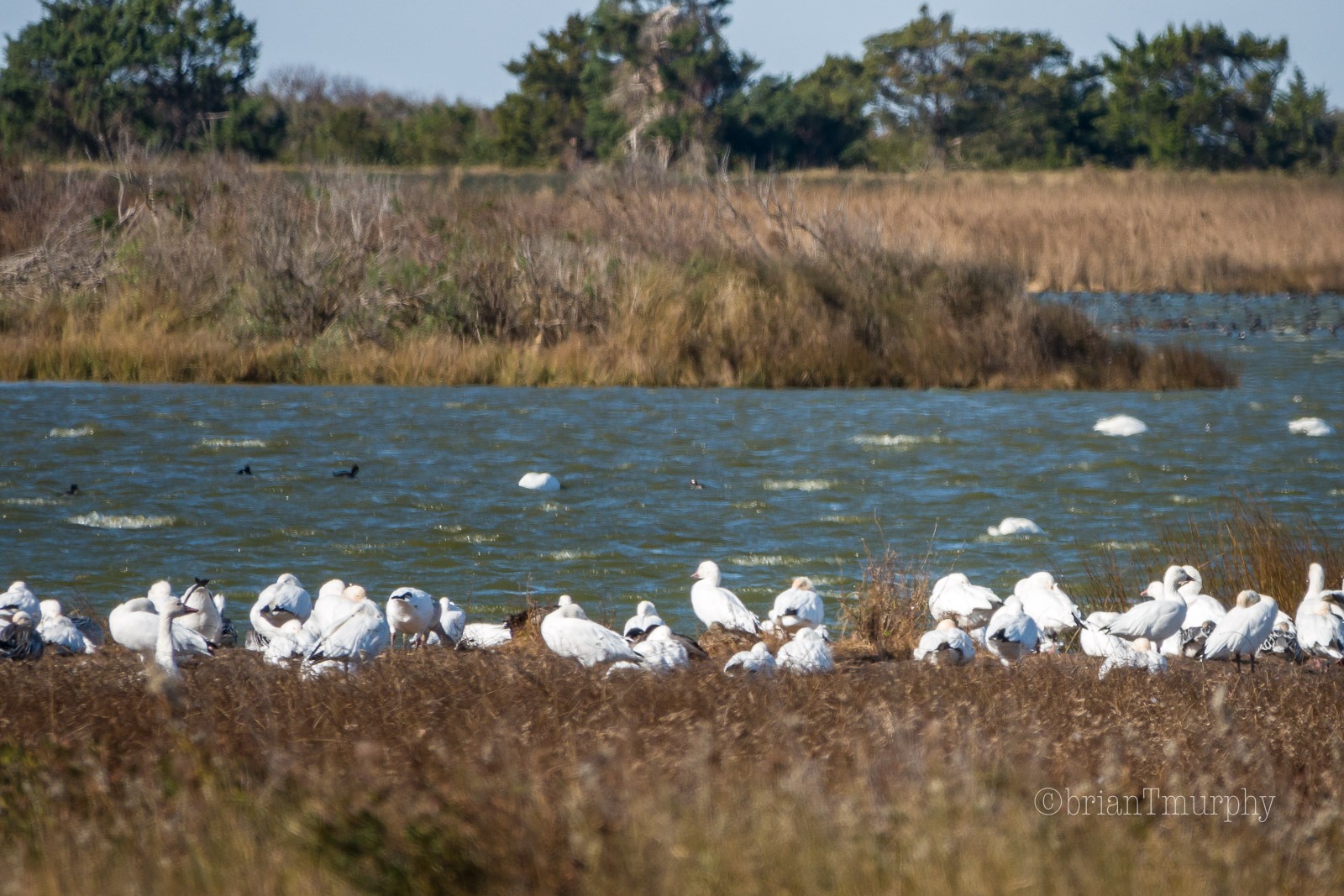Now, to the birds. With overcast skies, we did not have the best viewing, but we still had a wonderful time. It began with sighting huge flocks of Tundra Swans and Snow Geese on the drive down from Nags Head. Huge flocks! Thousands upon thousands, all-white birds against a grey sky. It was stunning. They were feeding in the large farm fields. Sorry for no pictures, we could not safely pull off the road.